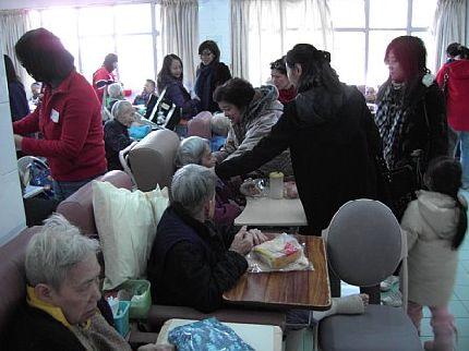 As part of the Joint Community Service Project on “Knit for the Elderly”, over 40 parents and students visited about 200 elderly in the Sage Madam Ho Sin Hang Home for the Elderly on 10.1.2009.